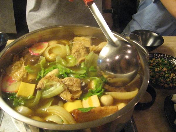 又是個不平凡的夜,火車站沿途街道上還有抗議的學生與媒體的報導車輛,小塞了一下車,晚上我接君下班後就和欣怡與仲耀夫妻倆吃晚餐,高級的日本料理,餐廳是五星級喜來登的”桃山餐廳” ,進入包廂後我被活潑的朋友的小孩完耍聲嚇到,十餘坪很大的空間讓我們吃得開心,小朋友也玩得盡性,除了花壽司、超新鮮的生魚片和鰻魚便當,這些都是吃得飽的傳統必點日式料理,我個人一上桌就超想吃壽喜鍋的,只是迷你鍋要六百八湯頭一般讓我覺得可惜!印象最深的是生吃新鮮的牡丹蝦,蝦頭也有特別處理,餐廳幫我們特別炸過再上桌,酥酥脆脆很香ㄋ。